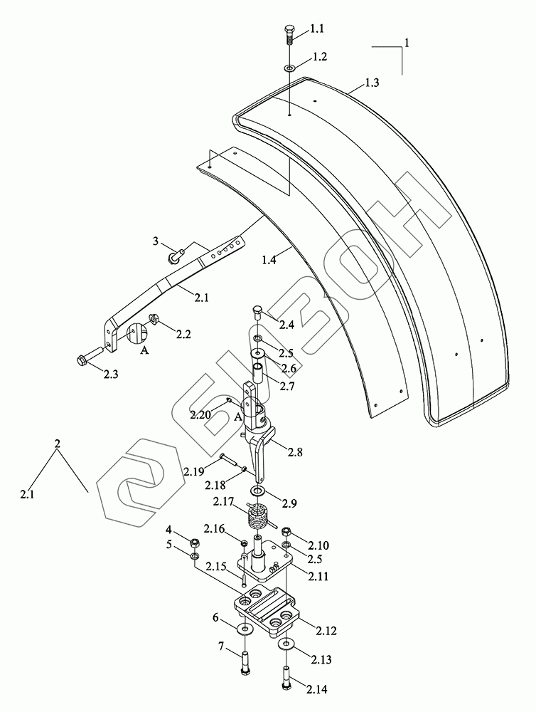 Графический каталог запасных частей к технике: LOVOL TD2SA1304-018K. Брызговик правый передний