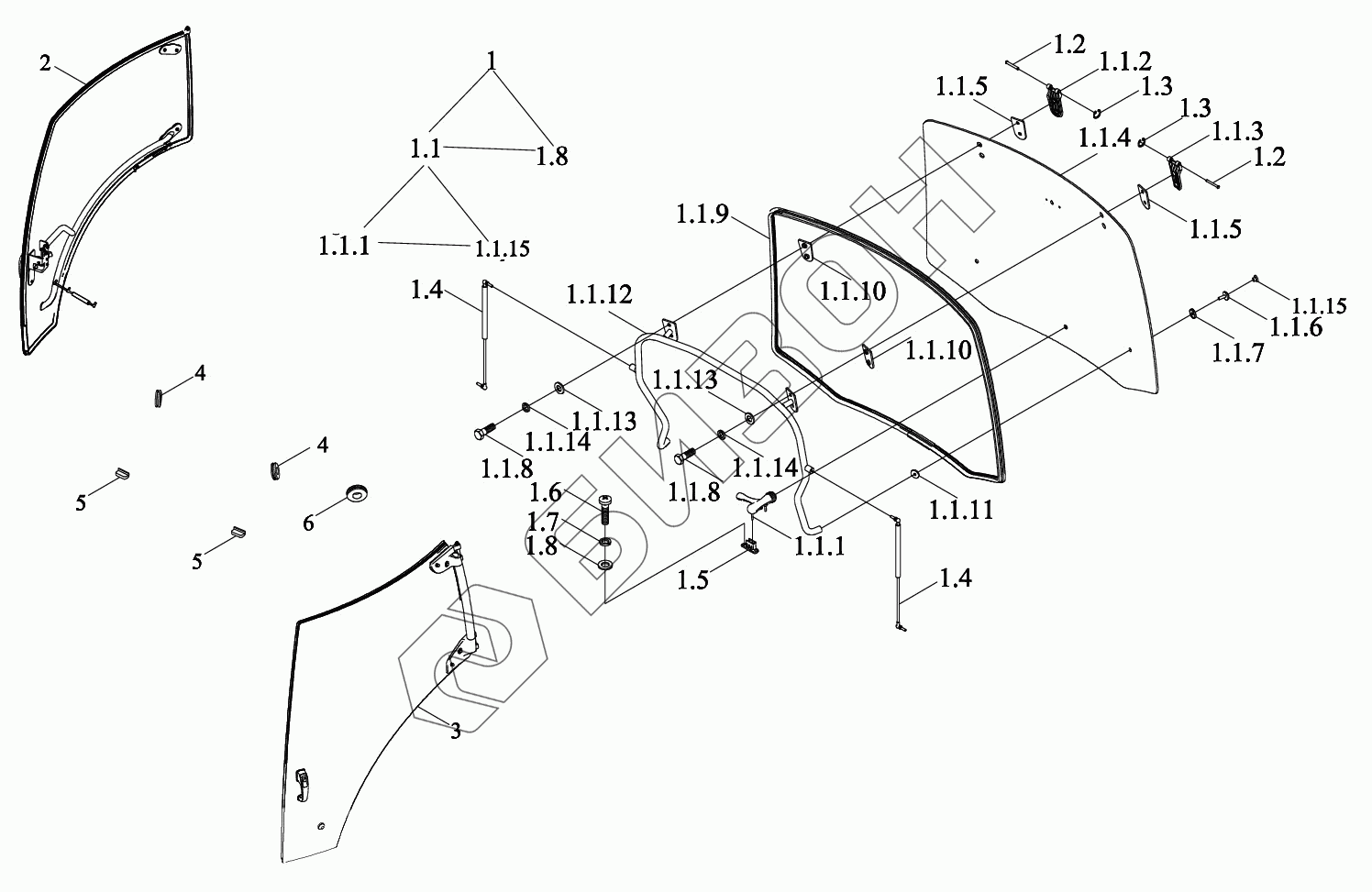 Графический каталог запасных частей к технике: LOVOL TD2SA1304-018K. Кабина 2