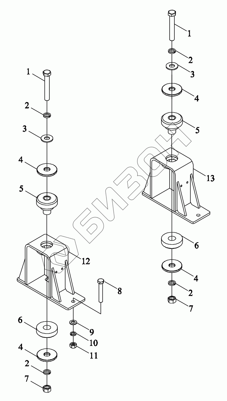 Графический каталог запасных частей к технике: LOVOL TD2SA1304-018K. Кронштейн кабины задний