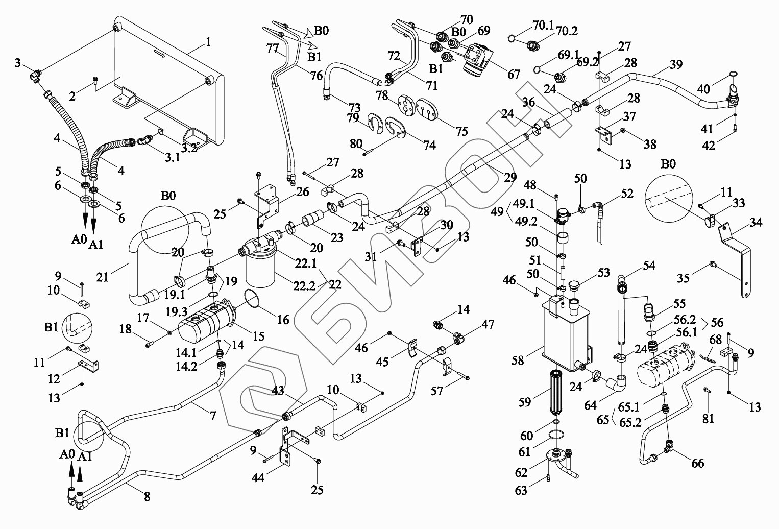 Графический каталог запасных частей к технике: LOVOL TD2SA1304-018K. Полностью гидравлический механизм рулевого управления 1