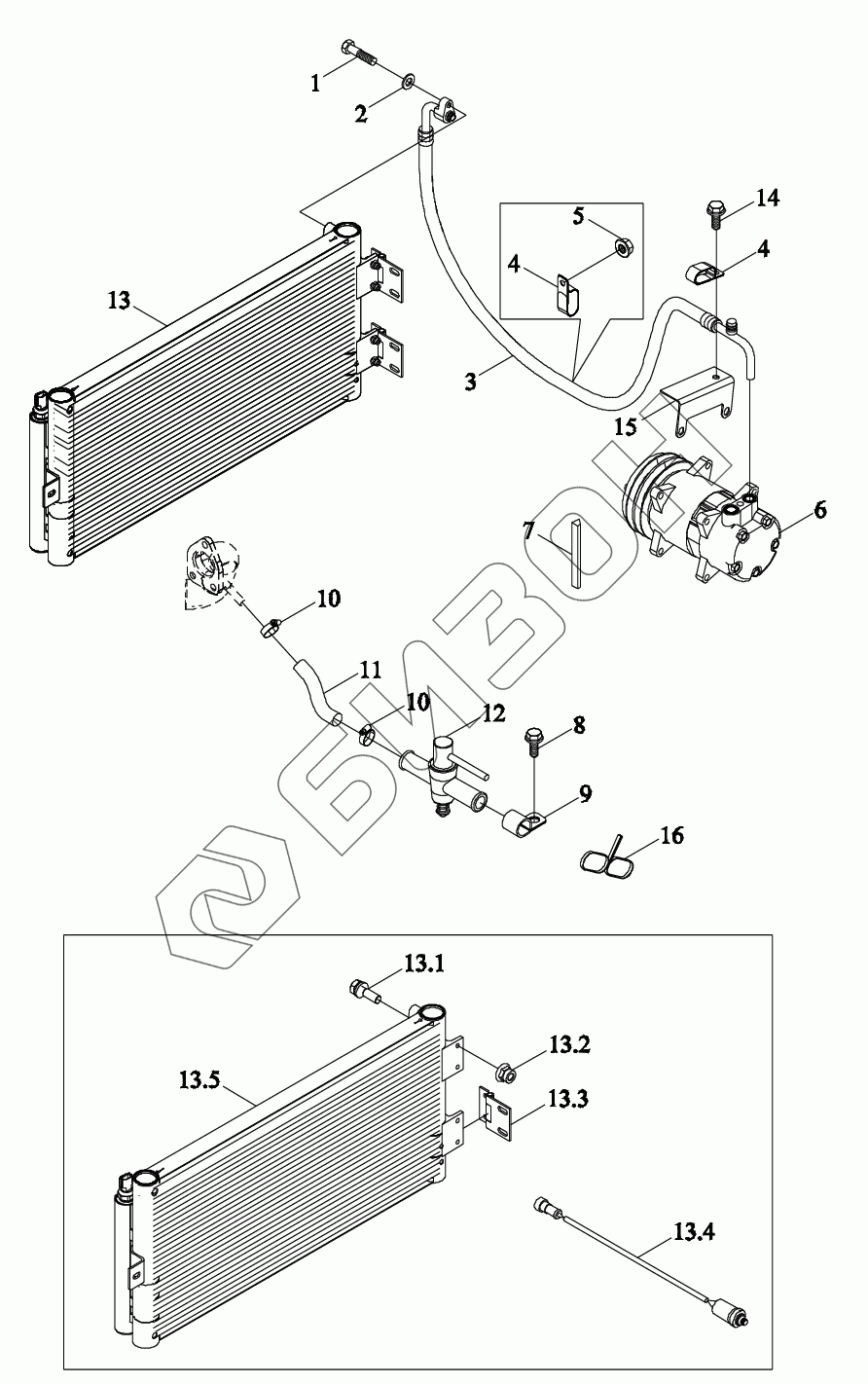 Графический каталог запасных частей к технике: LOVOL TD2SA1304-018K. Система кондиционирования воздуха - двигатель