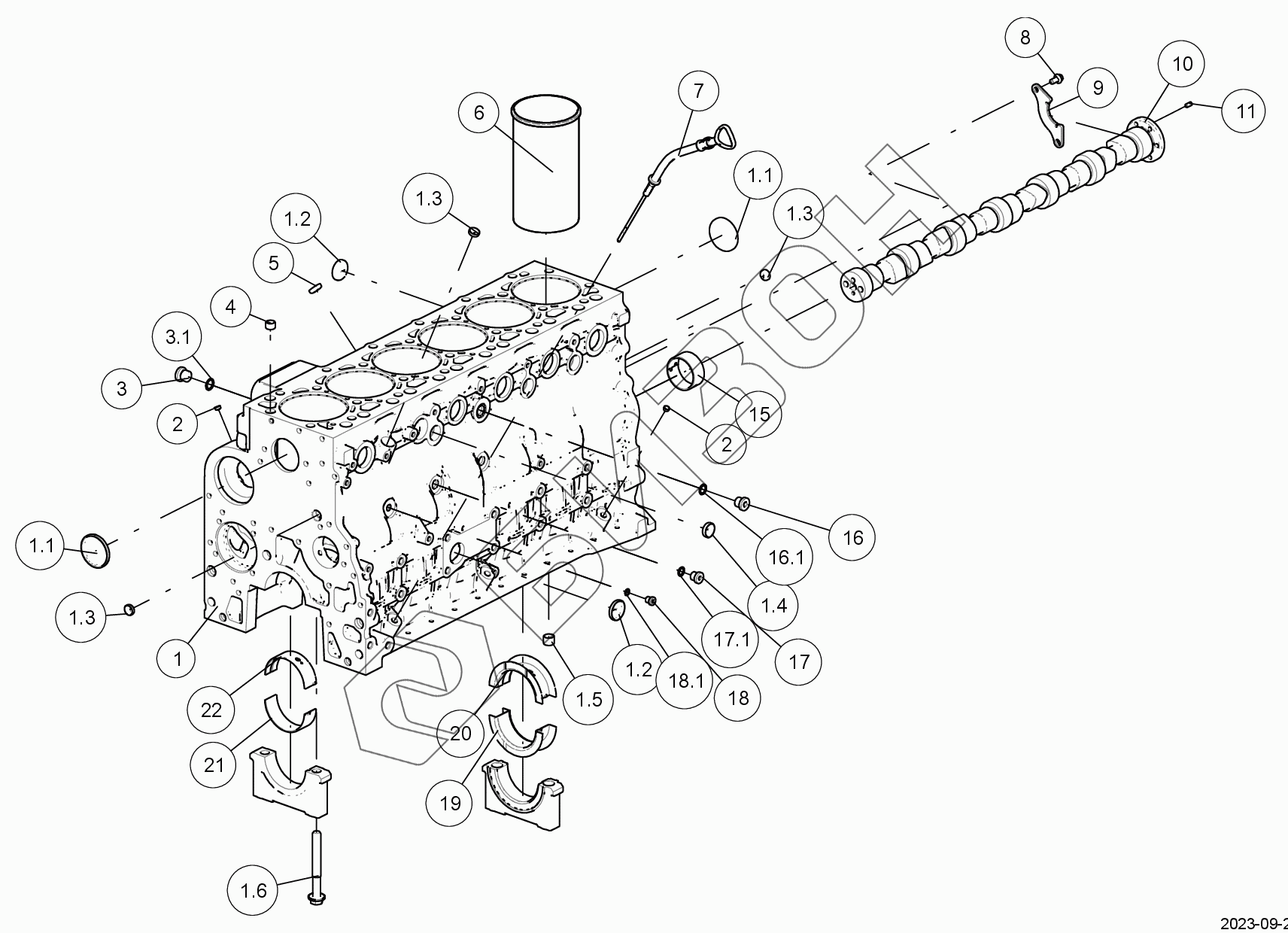 Графический каталог запасных частей к технике: LOVOL TD2SA1304-018K. Блок двигателя и распредвал