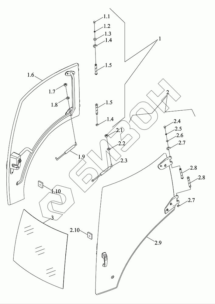 Графический каталог запасных частей к технике: LOVOL TM3Y1A804-001K. Двери, стекло