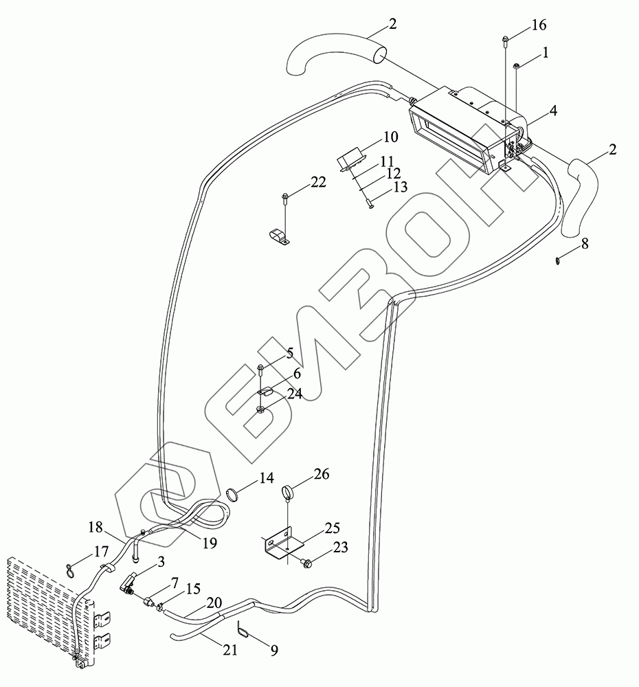 Графический каталог запасных частей к технике: LOVOL TM3Y1A804-001K. Система кондиционирования воздуха - кабина 1