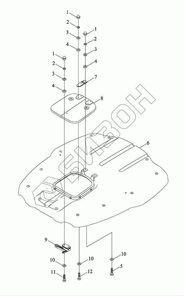 Графический каталог запасных частей к технике: LOVOL TM3Y1A804-001K. Крыша, люк