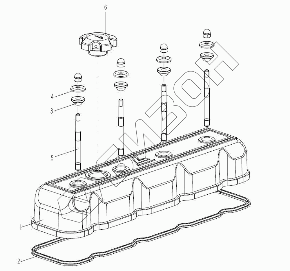 Графический каталог запасных частей к технике: LOVOL TM3Y1A804-001K. Крышка головки блока цилиндров