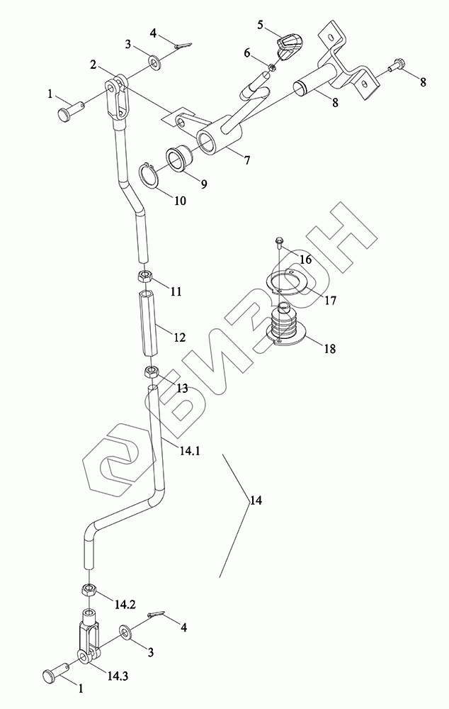 14.1 TY3S385010020K Рычаг нижний управления переключением передач