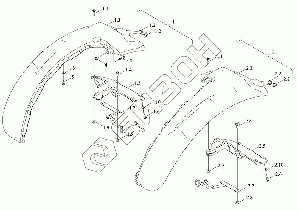 Графический каталог запасных частей к технике: LOVOL TM3Y1A804-001K. Молдинг заднего брызговика
