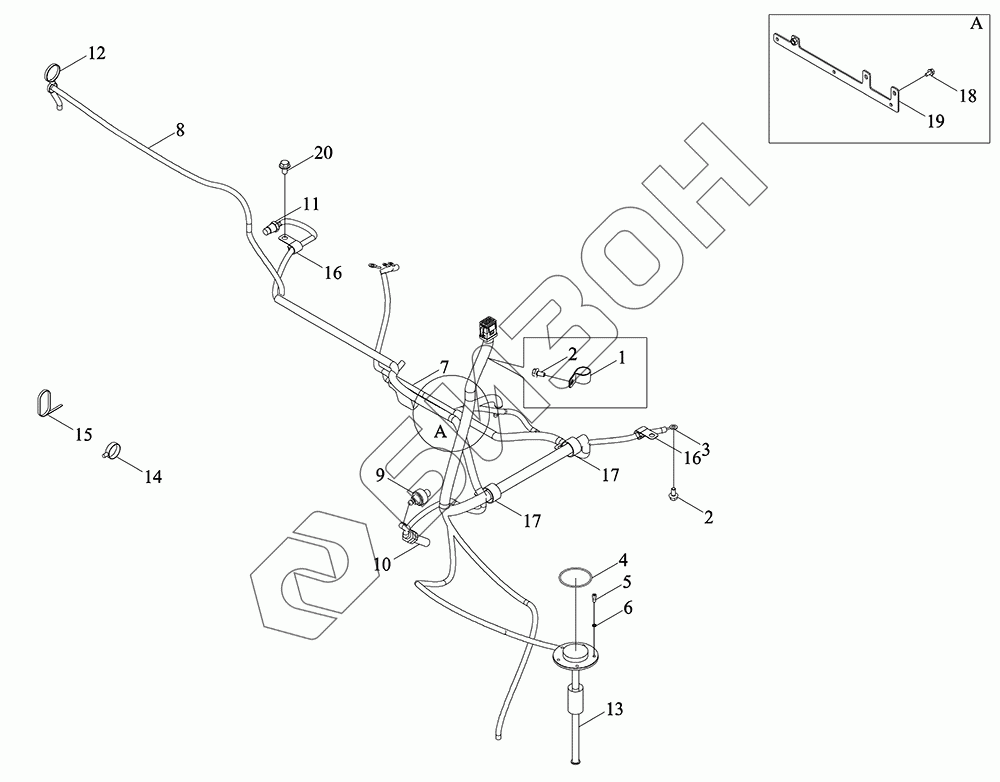 Графический каталог запасных частей к технике: LOVOL TM3Y1A804-001K. Монтажный блок жгута проводов двигателя