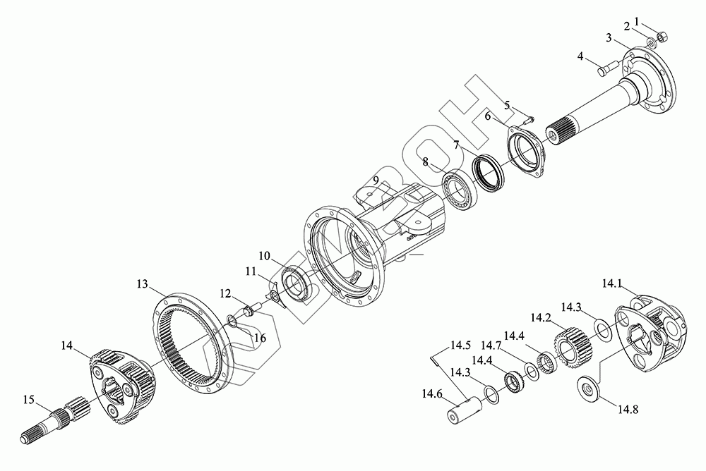 Графический каталог запасных частей к технике: LOVOL TM3Y1A804-001K. Правая конечная передача