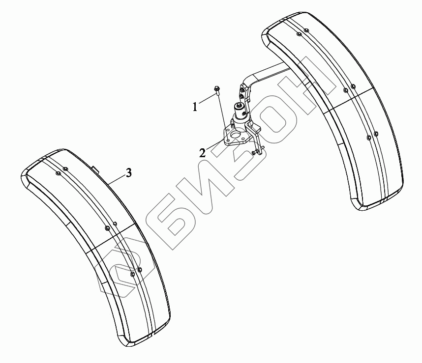 Графический каталог запасных частей к технике: LOVOL TM3Y1A854-008K. Монтажный блок переднего брызговика 1