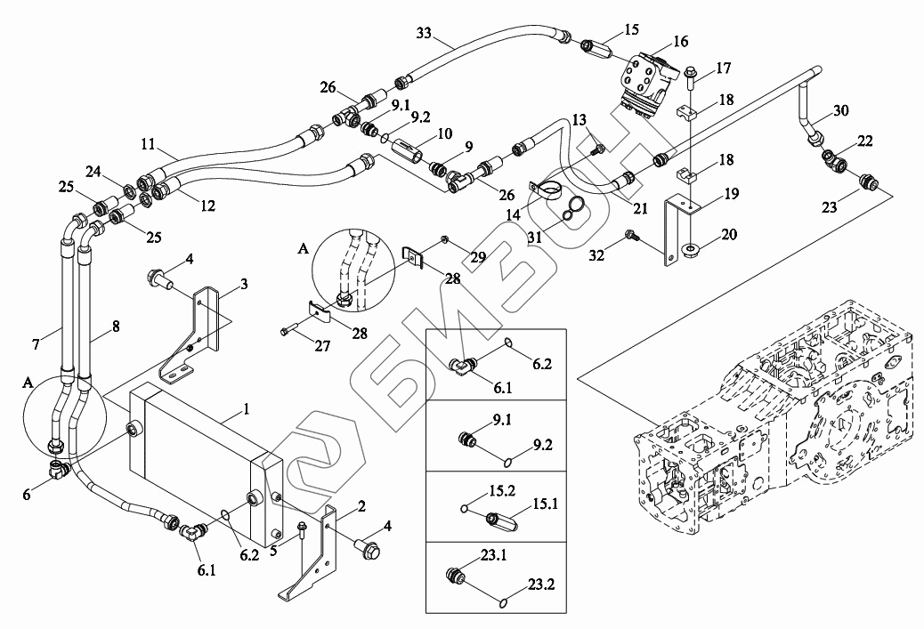 28 TH02402010054 Зажим маслопровода и резиновая прокладка