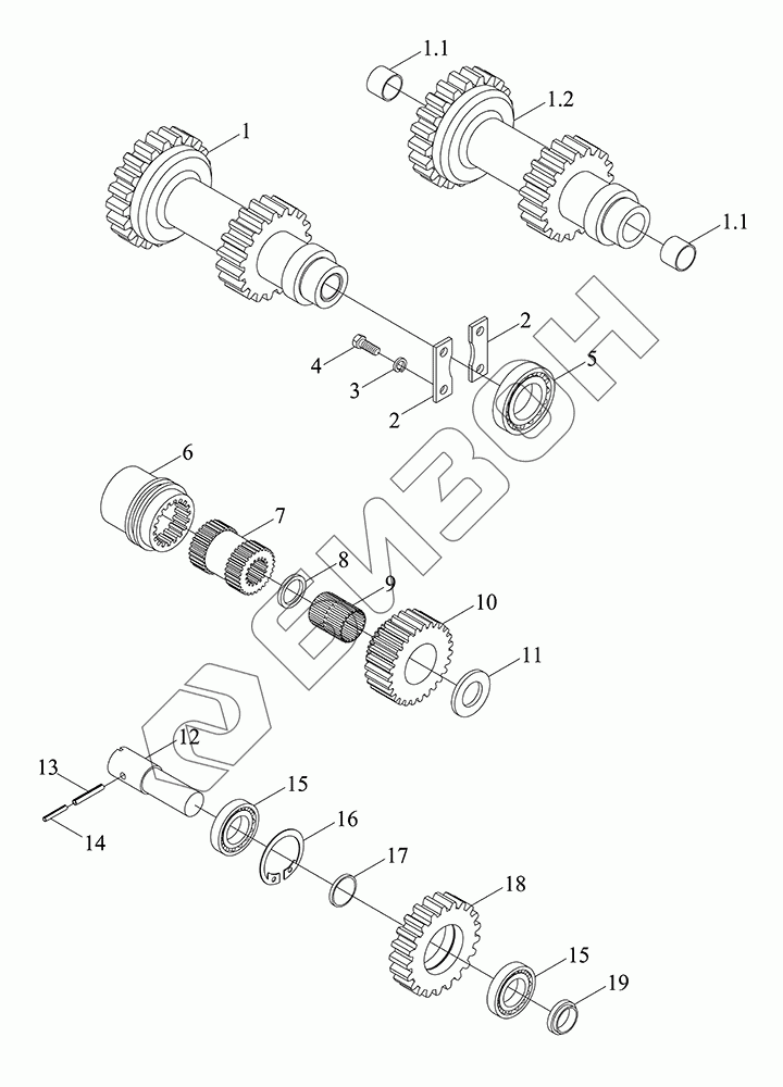 | 12 | TB450.38J-07 | Вал паразитной шестерни |