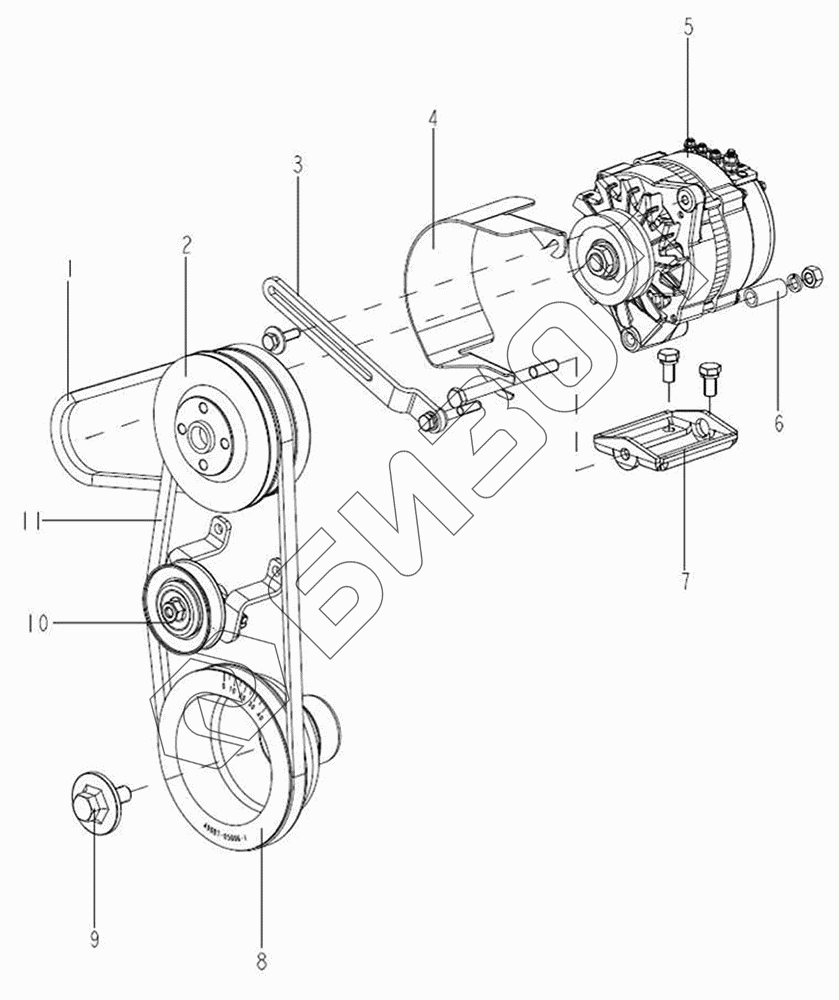 | 11 | 490B-41001-64 | Ремень вентилятора 1055Le |
