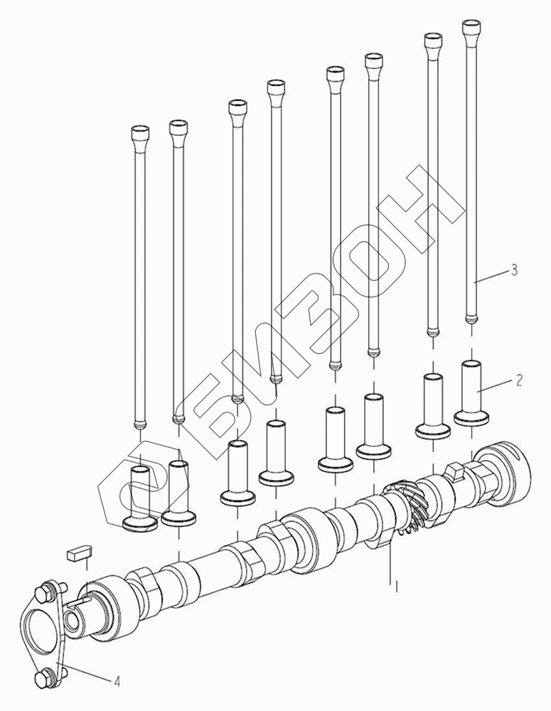 Графический каталог запасных частей к технике: LOVOL TM3Y1A854-008K. Распредвал и толкатели