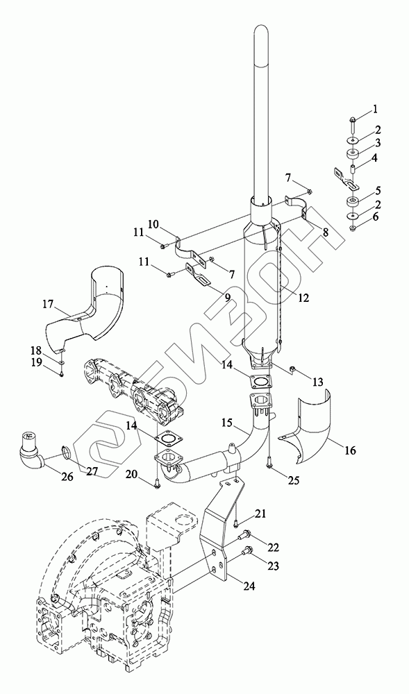 Графический каталог запасных частей к технике: LOVOL TM3Y1A854-008K. Выпускная система