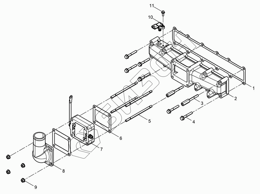 Графический каталог запасных частей к технике: LOVOL TM5D1A904-014K. Комплект группы впускного трубопровода