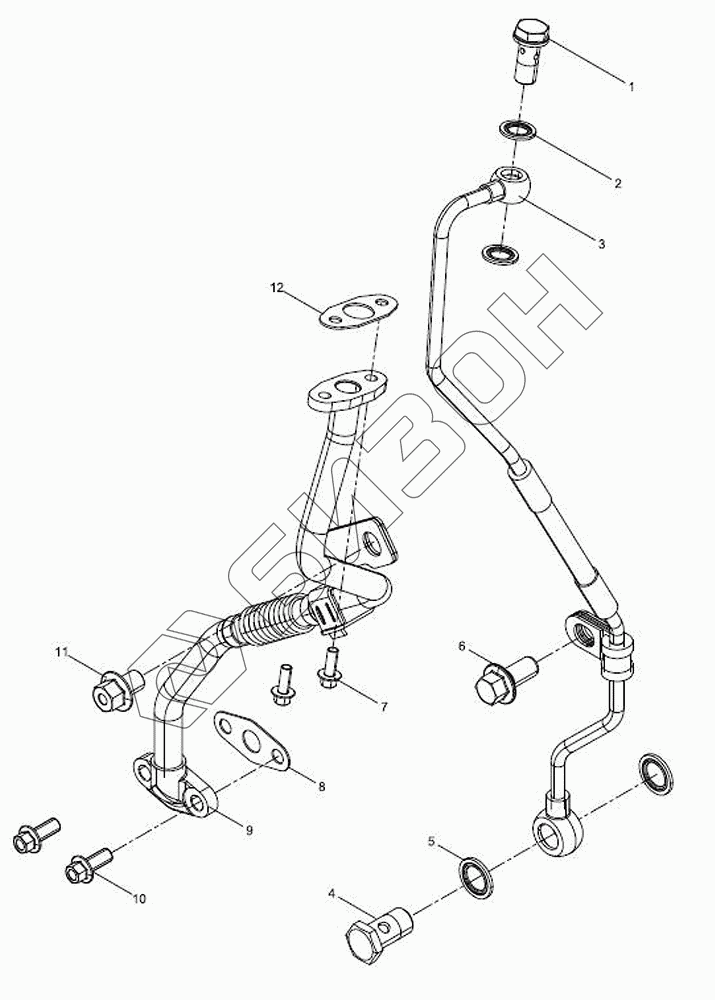 Графический каталог запасных частей к технике: LOVOL TM5D1A904-014K. Комплект соединения маслопровода турбокомпрессора