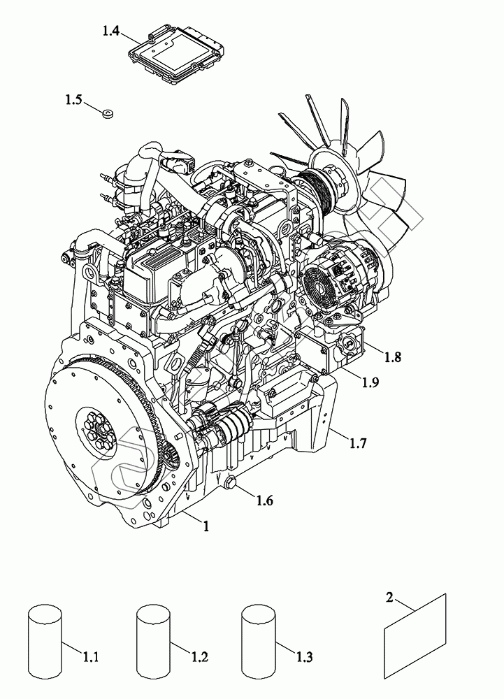 Графический каталог запасных частей к технике: LOVOL TM5D1A904-014K. Двигатель в сборе