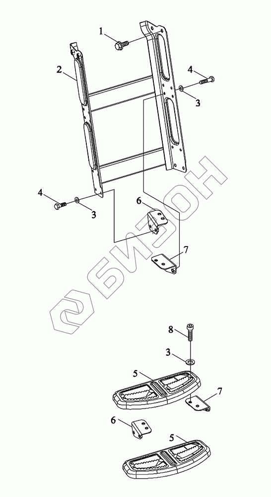 Графический каталог запасных частей к технике: LOVOL TM5D1A904-014K. Ступени лестницы