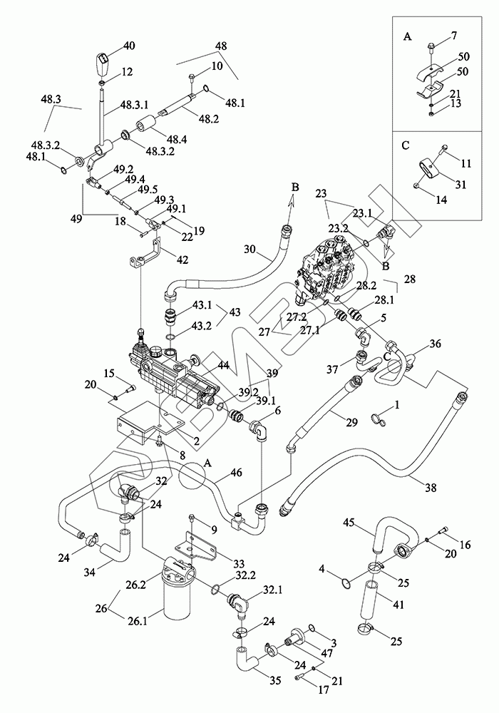 Графический каталог запасных частей к технике: LOVOL TM5D1A904-014K. Устройство гидравлической системы 2