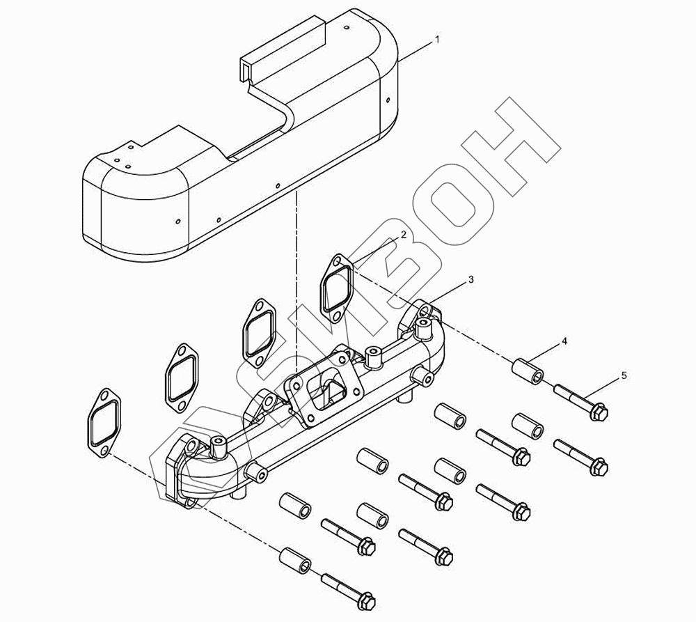 Графический каталог запасных частей к технике: LOVOL TM5D1A904-014K. Группа соединения выхлопной трубы