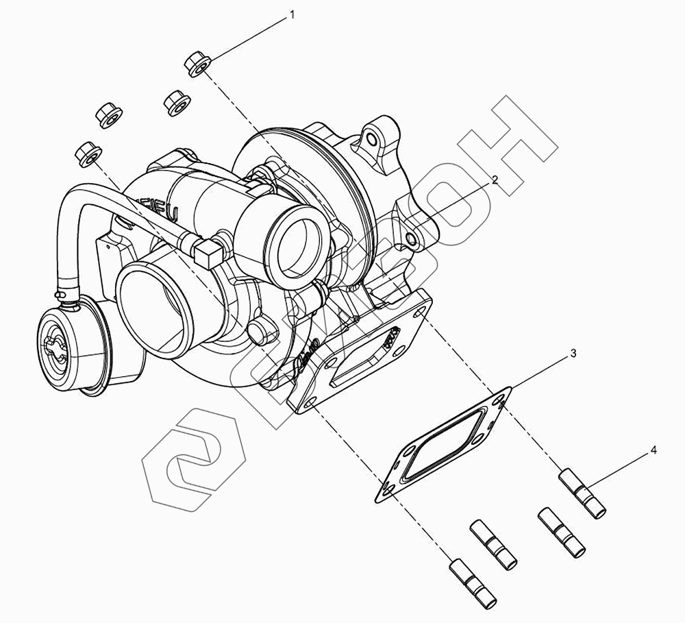 Графический каталог запасных частей к технике: LOVOL TM5D1A904-014K. Комплект соединения турбокомпрессора