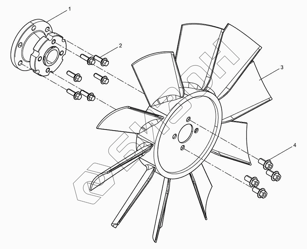 Графический каталог запасных частей к технике: LOVOL TM5D1A904-014K. Комплект соединения вентилятора и ступицы