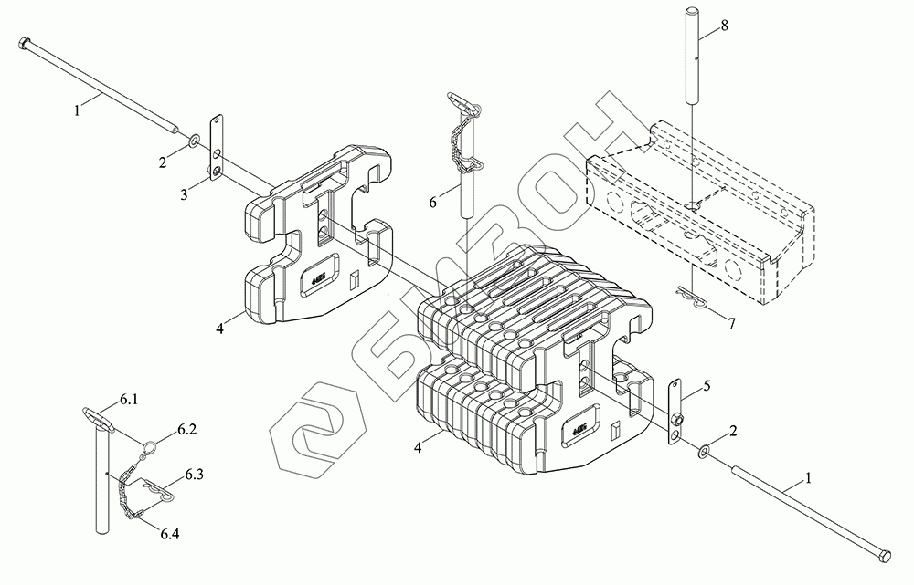 Графический каталог запасных частей к технике: LOVOL TM5D1A904-014K. Противовес передний в сборе