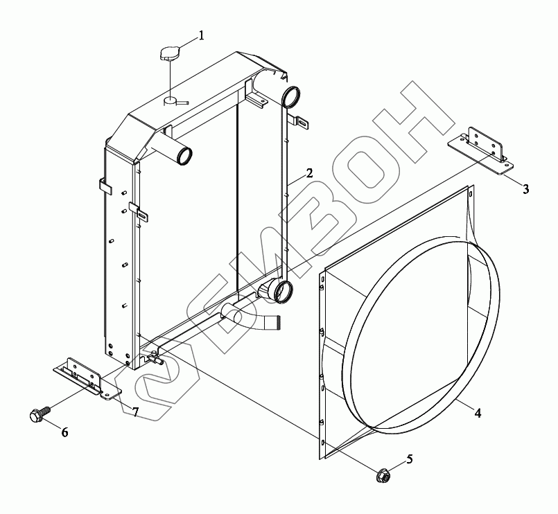 Графический каталог запасных частей к технике: LOVOL TM5D2A1304-001K. Дефлектор радиатора
