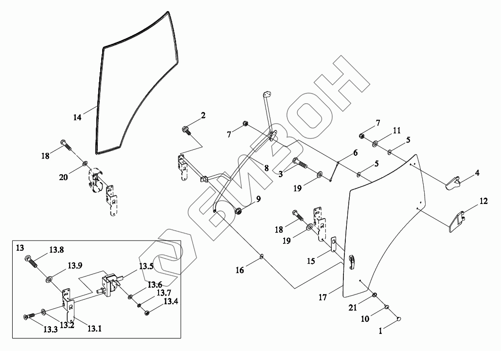 | 13.1 | TS06451013116 | Кронштейн крепления замка левой двери |