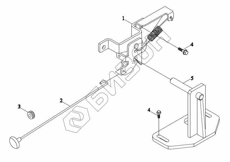 Графический каталог запасных частей к технике: LOVOL TM5D2A1304-001K. Механизм блокировки капота