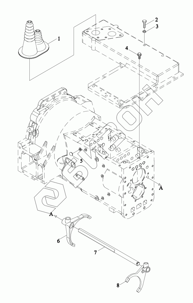 Графический каталог запасных частей к технике: LOVOL TM5D2A1304-001K. Механизм управления 2