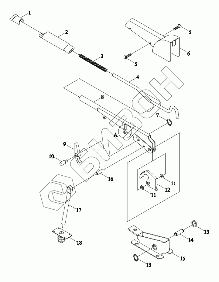 Графический каталог запасных частей к технике: LOVOL TM5D2A1304-001K. Механизм управления стояночным тормозом 2