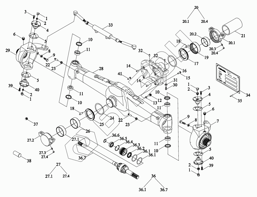 Графический каталог запасных частей к технике: LOVOL TM5D2A1304-001K. Цапфы, тяги, полуоси,гидроцилиндр