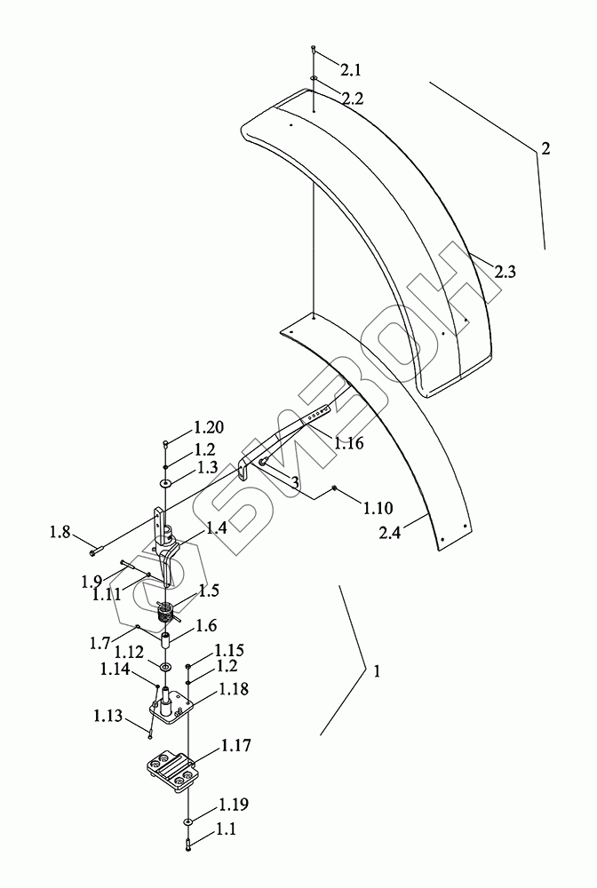 Графический каталог запасных частей к технике: LOVOL TM5D2A1304-001K. Брызговик правый передний