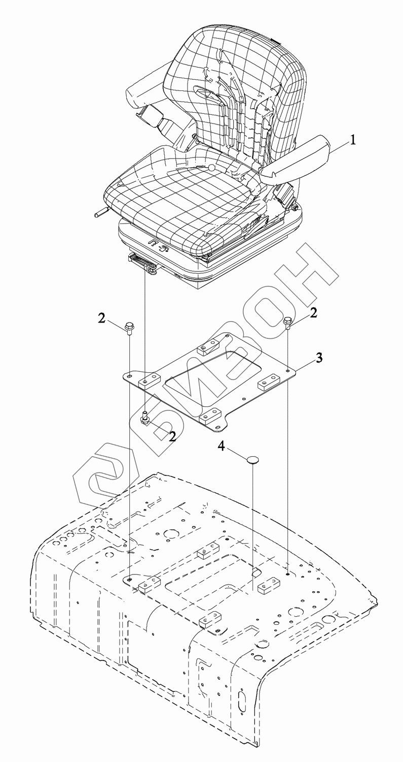 Графический каталог запасных частей к технике: LOVOL TM5D2A1304-001K. Сиденье