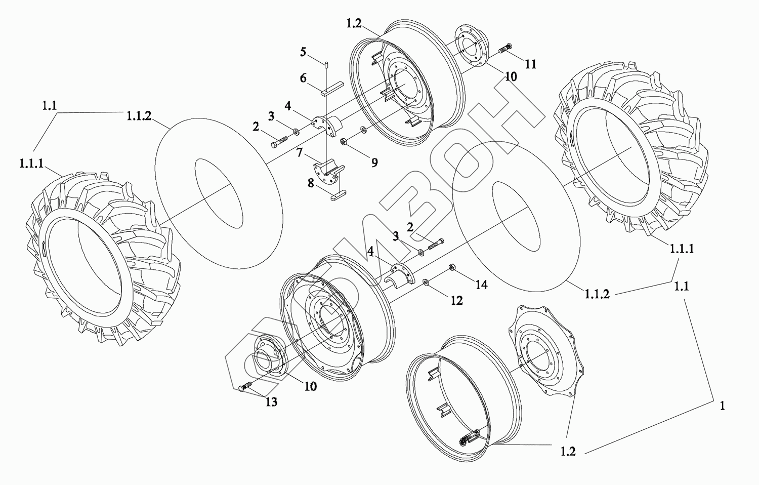 Графический каталог запасных частей к технике: LOVOL TM5D2A1304-001K. Заднее колесо