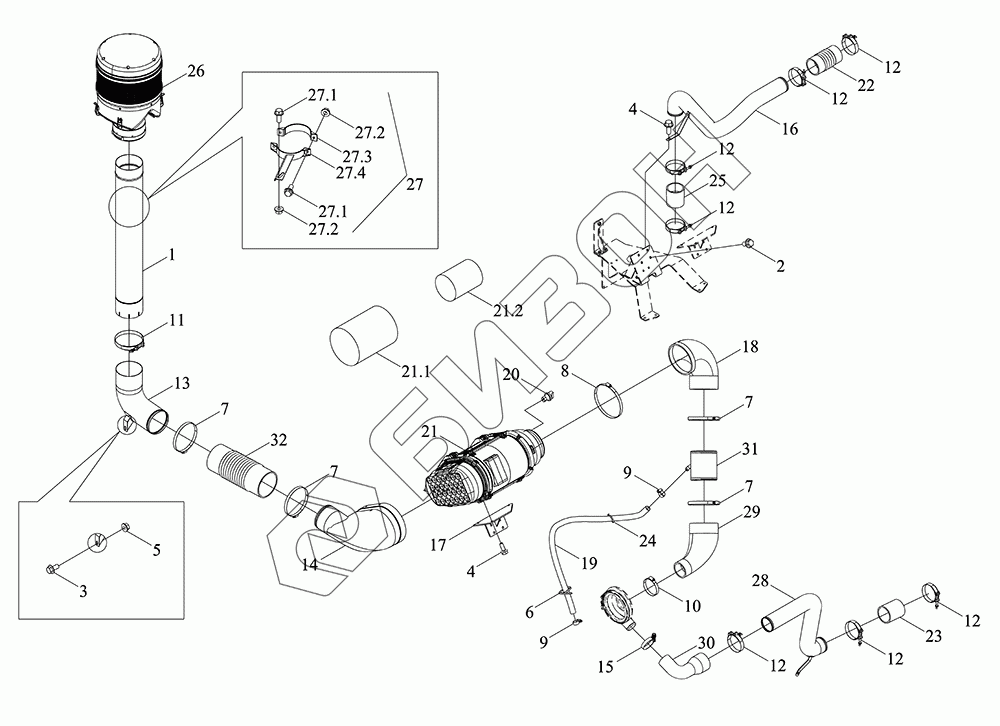 1 TS17110030007 Коллектор воздушного фильтра впускной