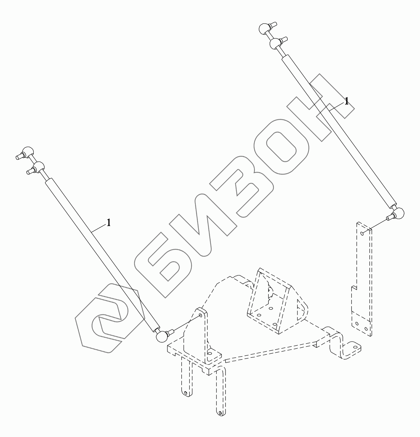 Графический каталог запасных частей к технике: LOVOL TM5D2A1304-001K. Кронштейн(аммортизатор капота)