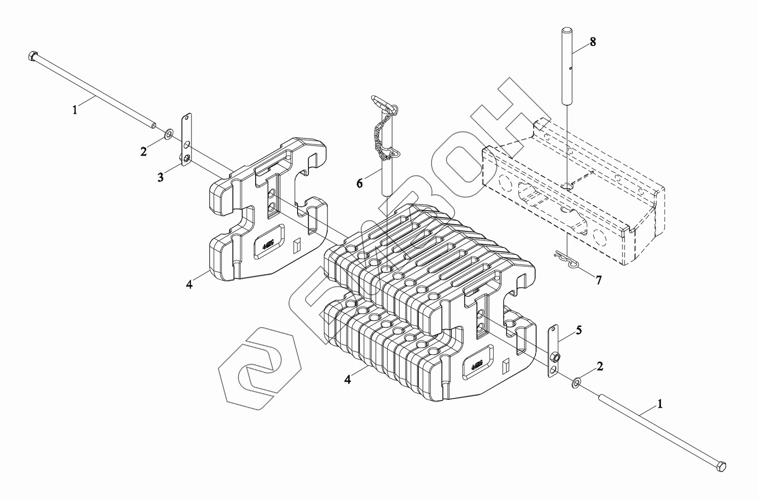 Графический каталог запасных частей к технике: LOVOL TM5D2A1304-001K. Противовес передний