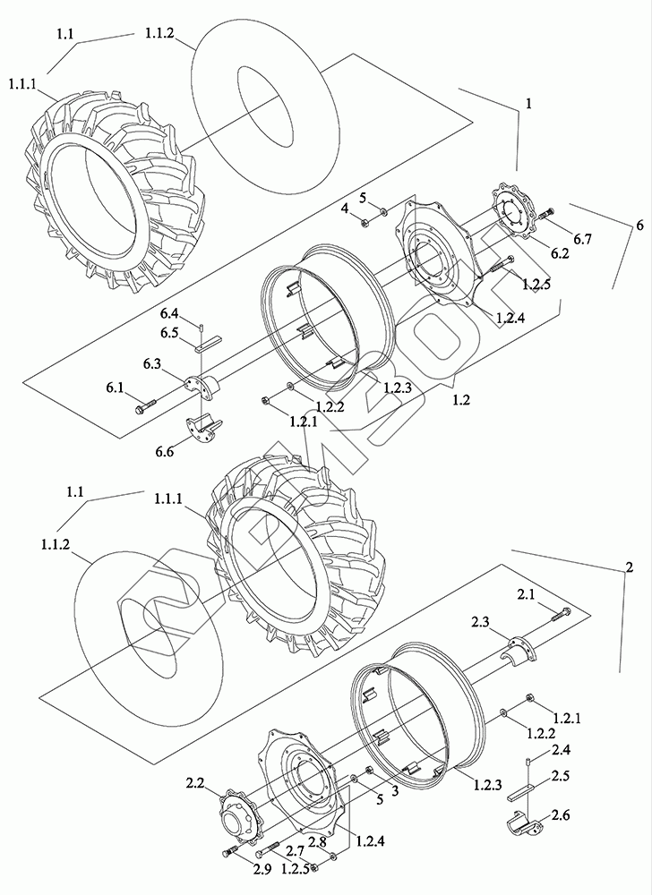 Графический каталог запасных частей к технике: LOVOL TM5D2A1304-001K. Заднее колесо