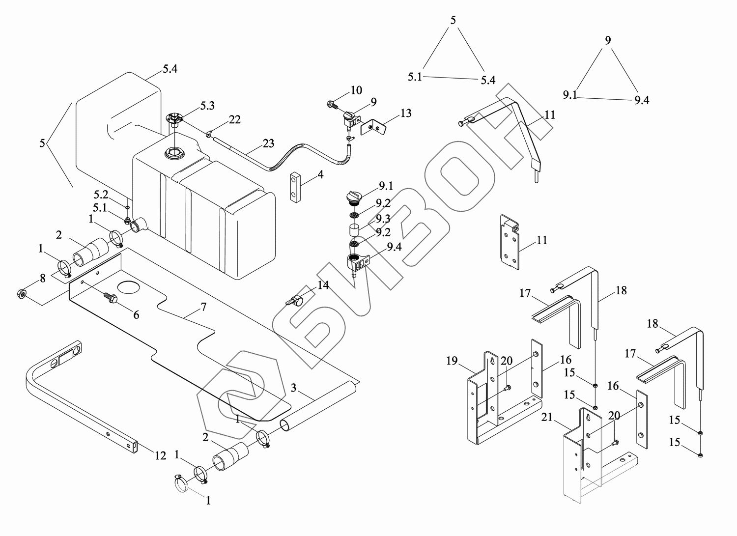 5 TH02502010001a Бак вспомогательный топливный в сборе