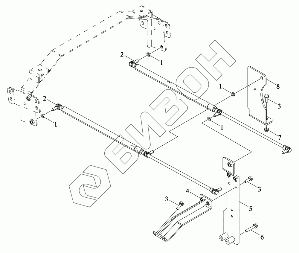 Графический каталог запасных частей к технике: LOVOL TM5D2A1304-001K. Кронштейн(аммортизатор капота)