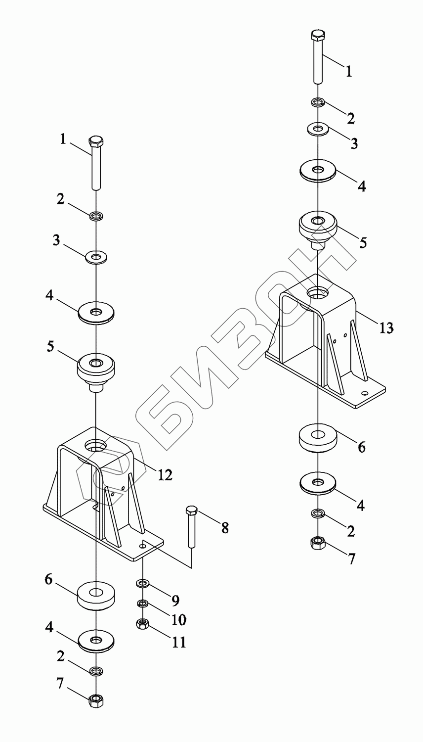 Графический каталог запасных частей к технике: LOVOL TM5D2A1304-001K. Кронштейн кабины задний