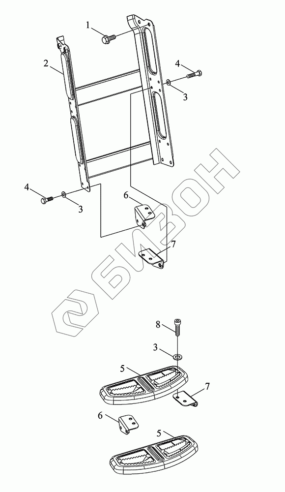 Графический каталог запасных частей к технике: LOVOL TM5D2A1304-001K. Лестница