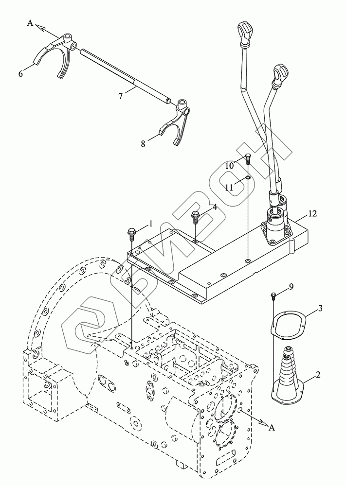 Графический каталог запасных частей к технике: LOVOL TM5D2A1304-001K. Механизм управления 1