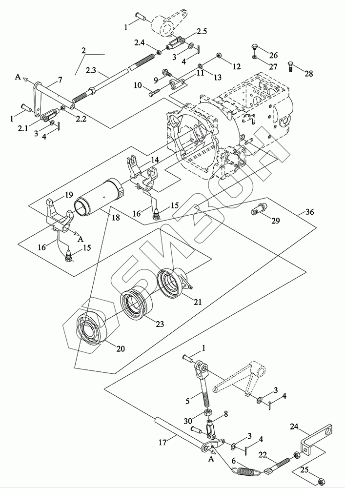 Графический каталог запасных частей к технике: LOVOL TM5D2A1304-001K. Механизм управления сцеплением 1