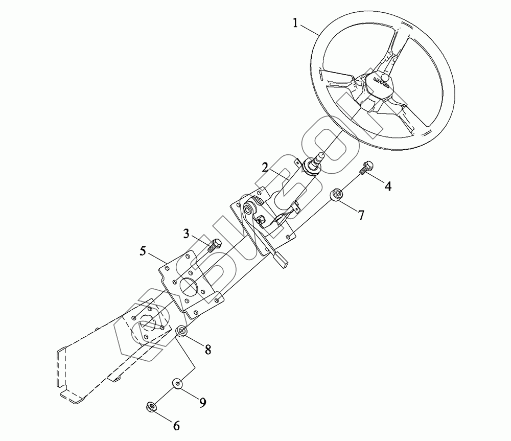 Графический каталог запасных частей к технике: LOVOL TM5D2A1304-001K. Рулевое колесо и рулевая колонка