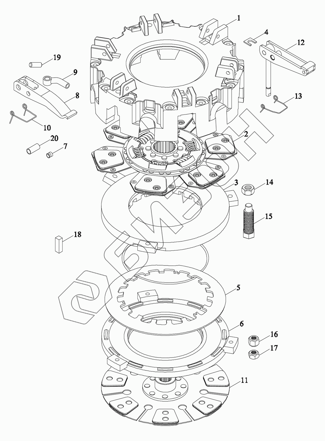 Графический каталог запасных частей к технике: LOVOL TM5D2A1304-001K. Сцепление 1